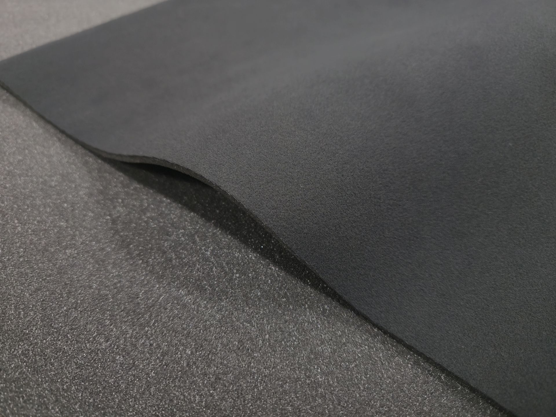 Les matériaux sont laminés sur une mousse spéciale d'une épaisseur d'environ 3-4 mm.