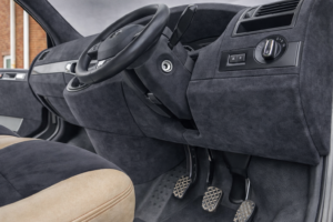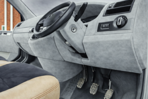 SUEDE SLIM Per rivestire cruscotti, elementi del cruscotto, montanti e parti in plastica Il materiale è sottile, quindi non appesantisce in modo significativo gli elementi rivestiti. Ciò facilita l'adattamento delle griglie di ventilazione e degli altri componenti del cruscotto. Inoltre, il materiale è caratterizzato da un'elevata elasticità, che consente un adattamento perfetto alla forma del cruscotto. SUEDE è uno speciale materiale per il rivestimento del tetto con un aspetto e una struttura...